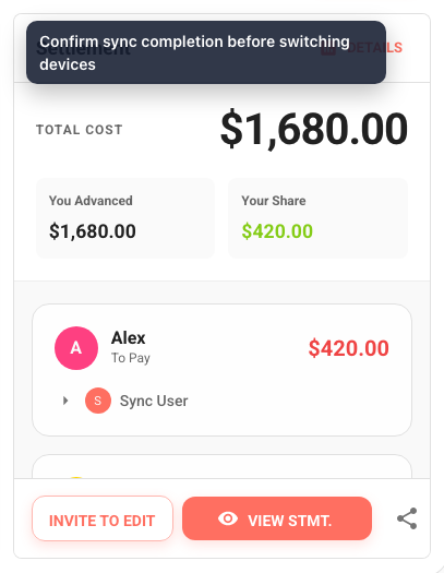 • After switching to desktop, spot-check at least 3 entries that were added on your phone to confirm they synced with correct amounts and participants.