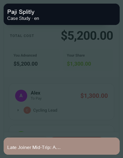 This case shows a practical pattern in Paji Splitly: keep one bill, edit participant scope only where needed, and validate changes through "Bill Modification Log" and "Settlement."