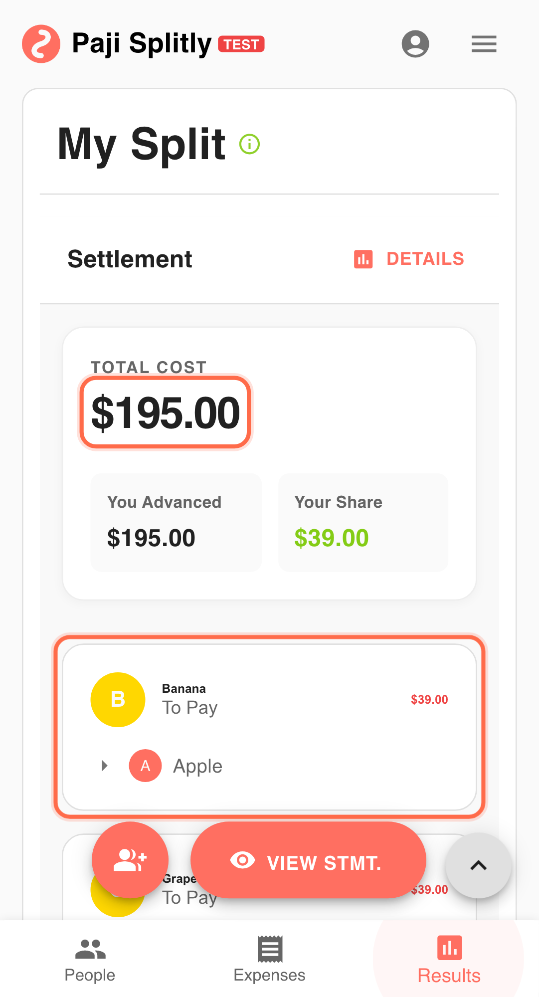 Paji Splitly calculates net balances and shows a simplified settlement path. If time is tight, settle major transfers first and refine small details afterward. -