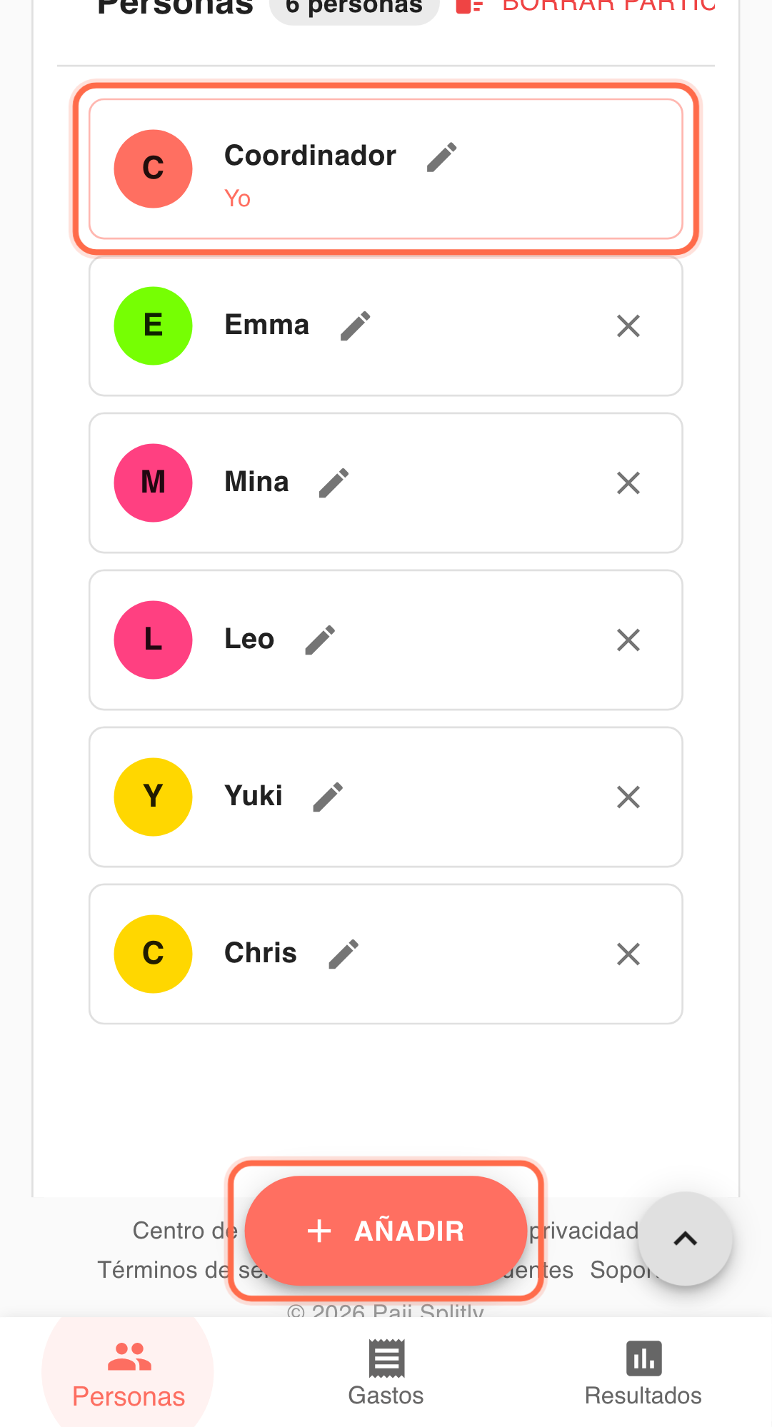 Este caso muestra una rutina práctica en Paji Splitly: mantener una sola cuenta, editar participantes solo donde corresponde y validar con historial y resultados.