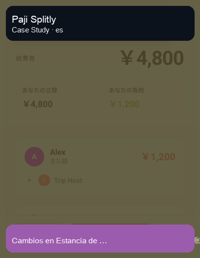 Este caso muestra una estructura práctica en Paji Splitly: separar hospedaje por noche y definir participantes por cada gasto.