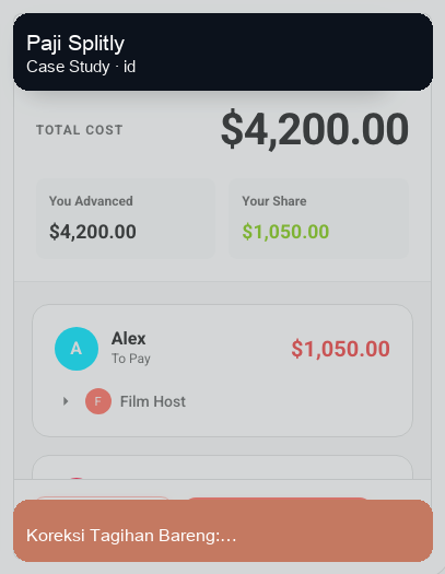Kasus ini menunjukkan alur praktis di Paji Splitly: semua orang tetap kerja di satu tagihan, revisi dilakukan langsung, lalu diverifikasi lewat "Log Modifikasi Tagihan" sebelum finalisasi.