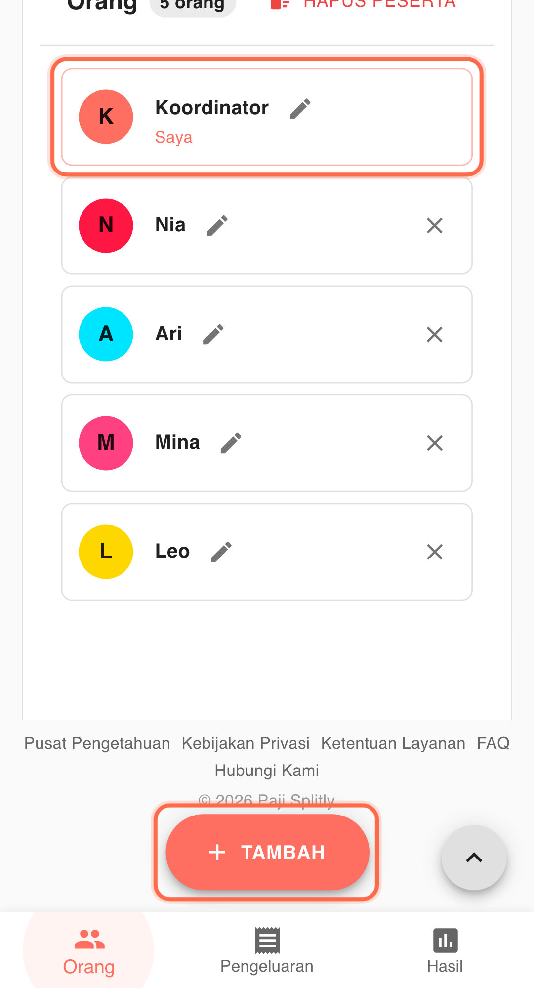 - Peserta dan biaya utama sudah masuk.