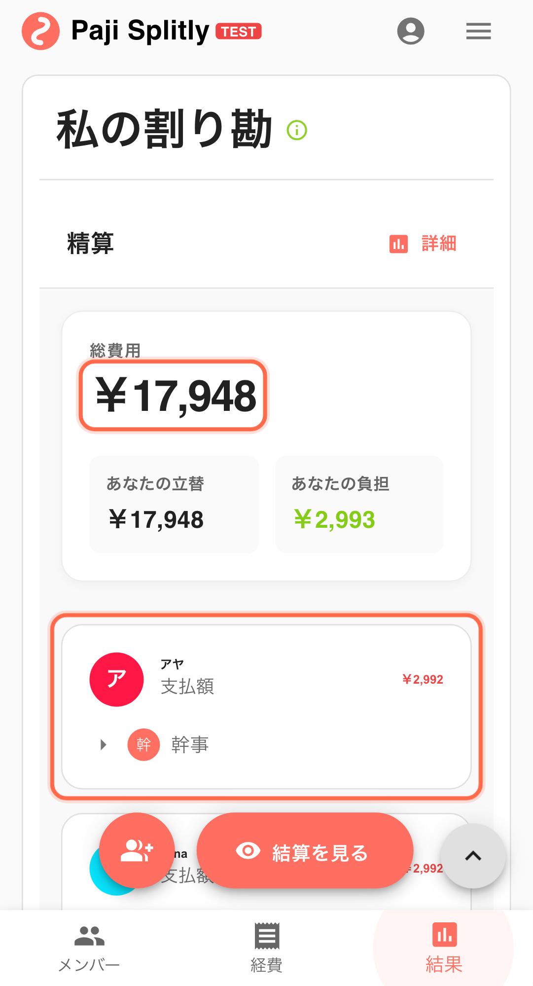 「結果」を確定し「精算書を確認」を共有 最終版を揃えてから送金する。