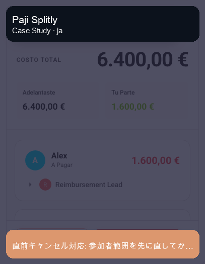 - 送金依頼を出す前に、キャンセルの事実と更新後の一人あたり金額をグループに共有する。旧金額で支払われるのを防ぐ。