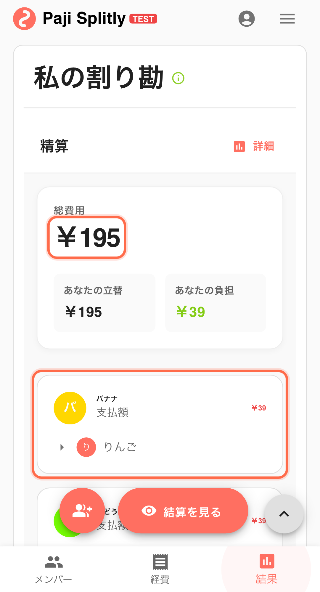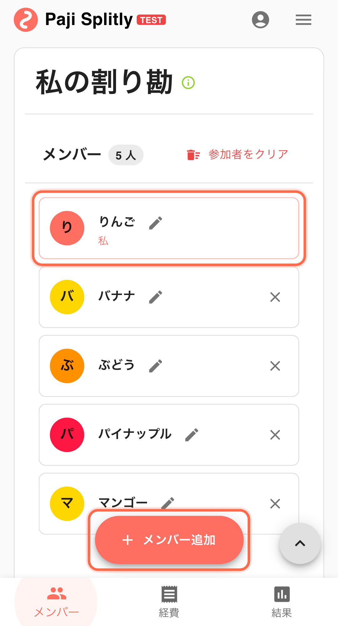 このケースでは、Paji Splitly のゲストモードを使い、参加者名を一時的にフルーツ名で登録して、まず支払い関係を確定させる流れを紹介します。