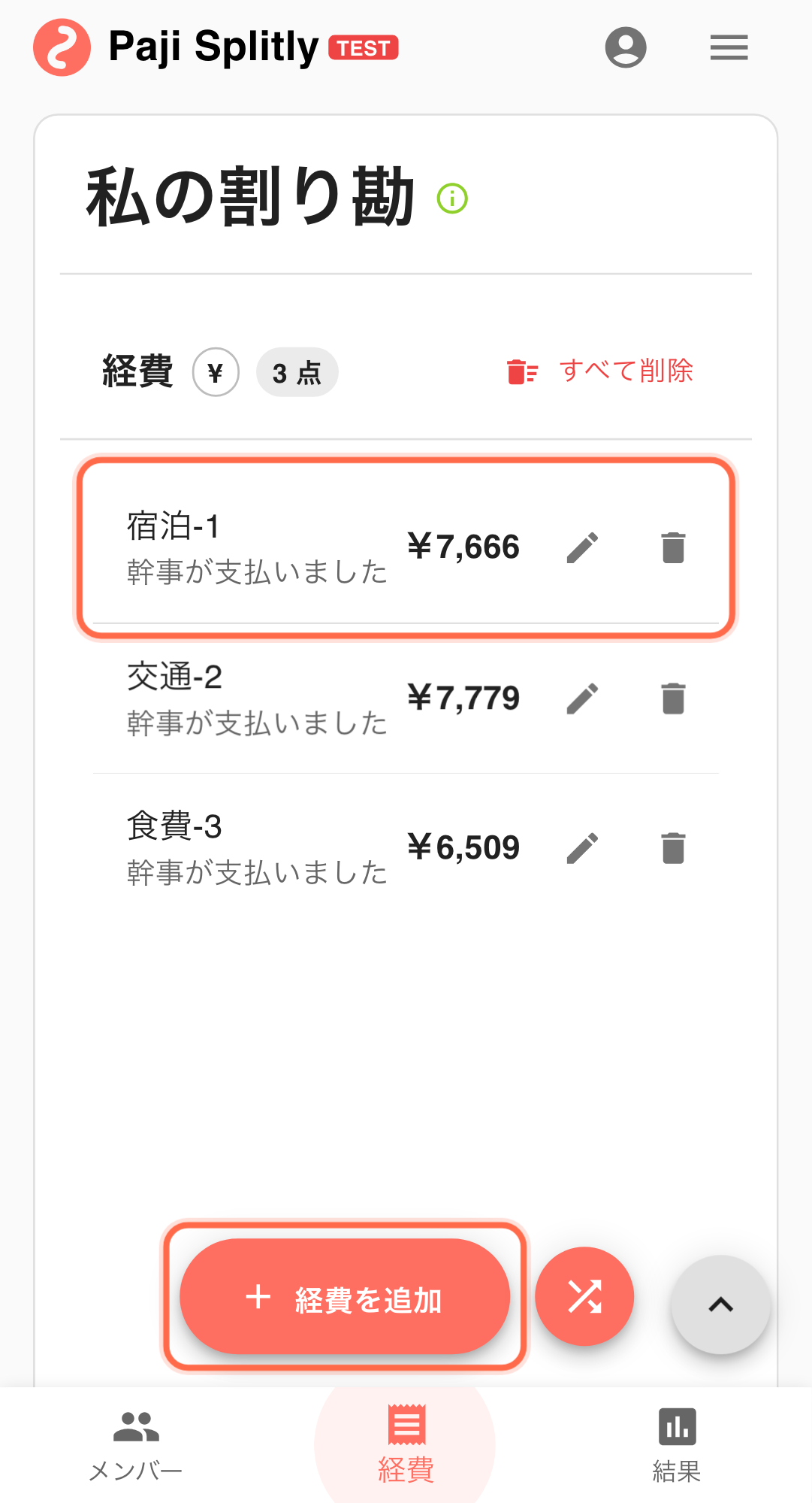 - 毎週、食事・移動・共同購入の支出が発生。
