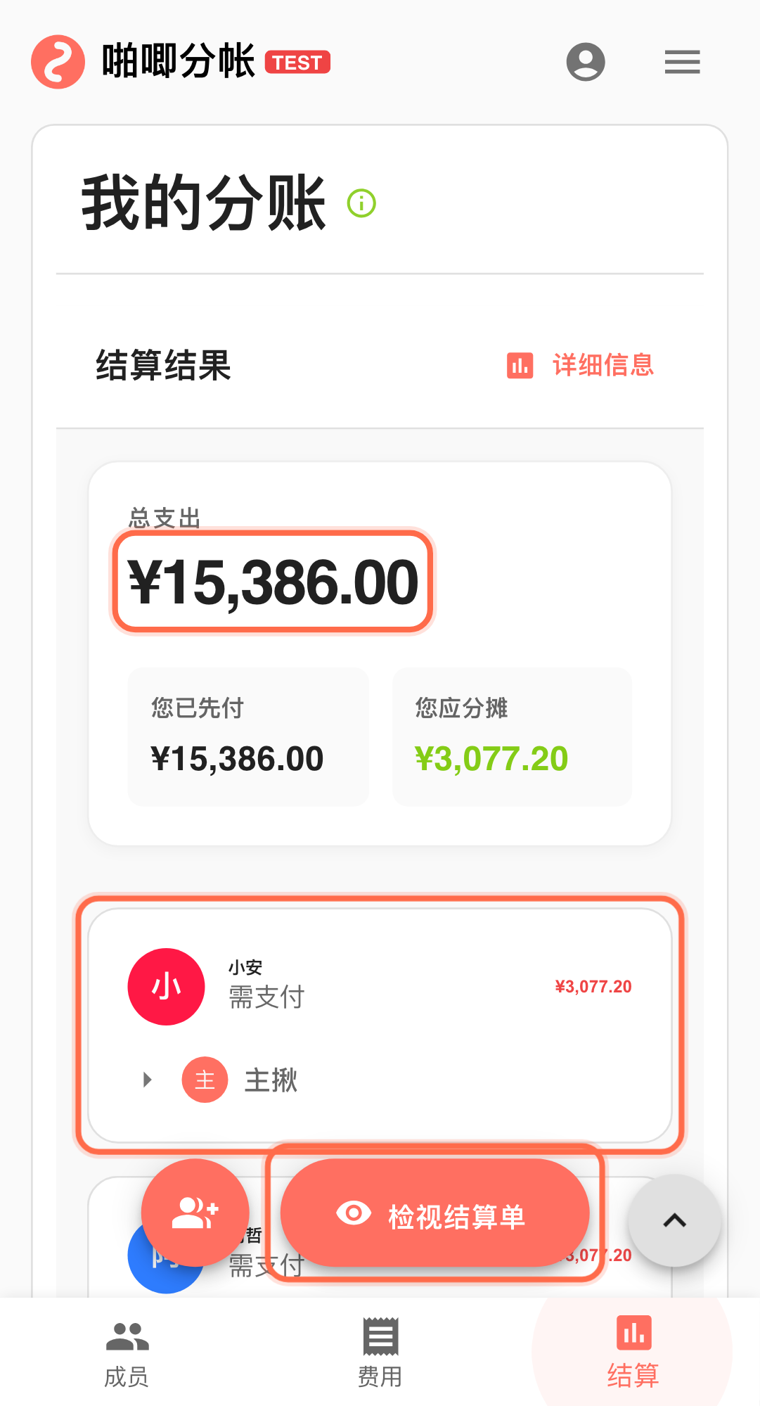 在「结算结果」确认付款路径 先确认谁该给谁,金额是否正确。