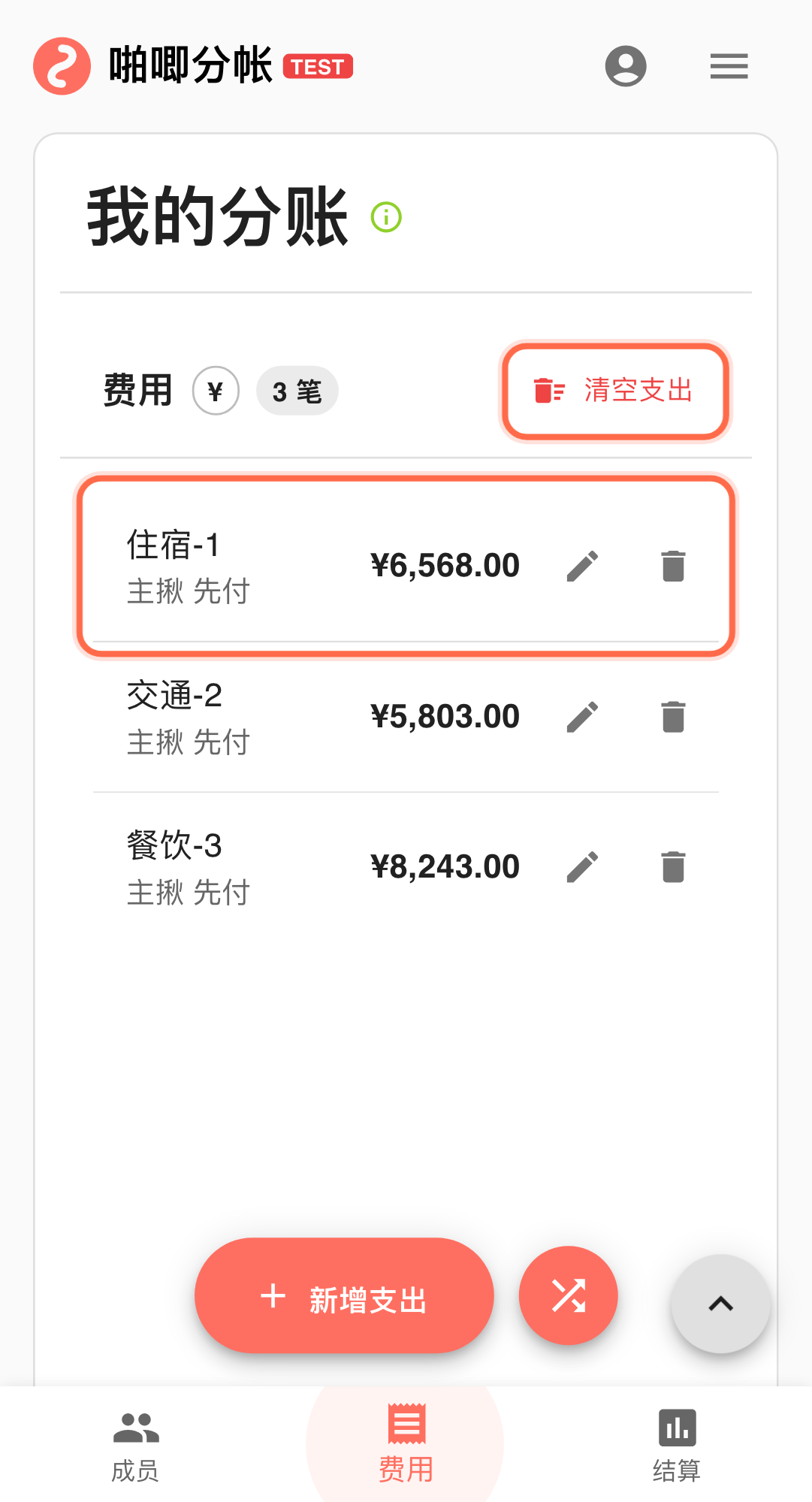 费用命名保持可辨识 例如“晚餐-第一轮”“停车-地下一层”。