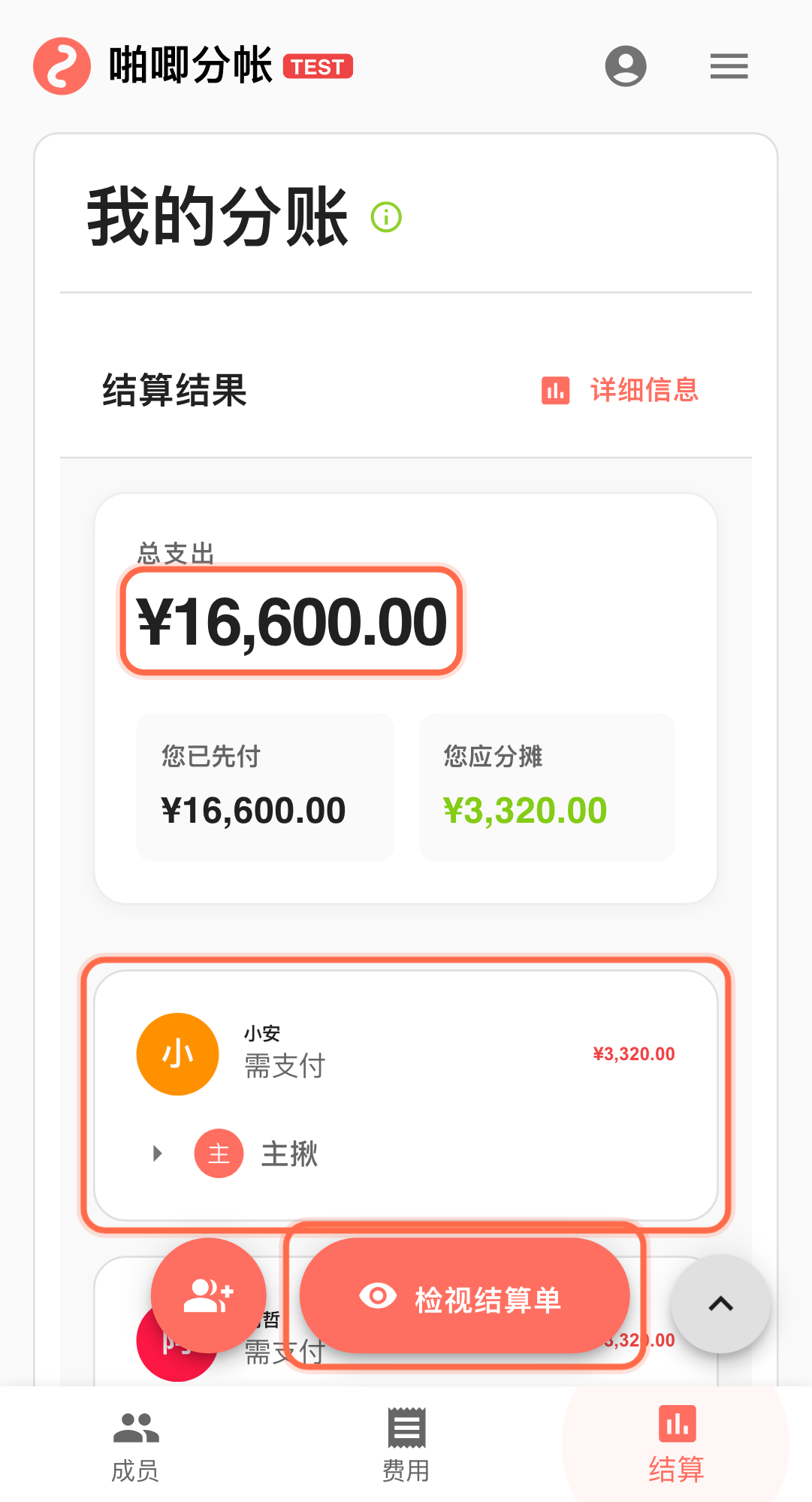 - 确认标记为"部分结清"的成员在后续新增支出后,剩余应付金额有正确更新。