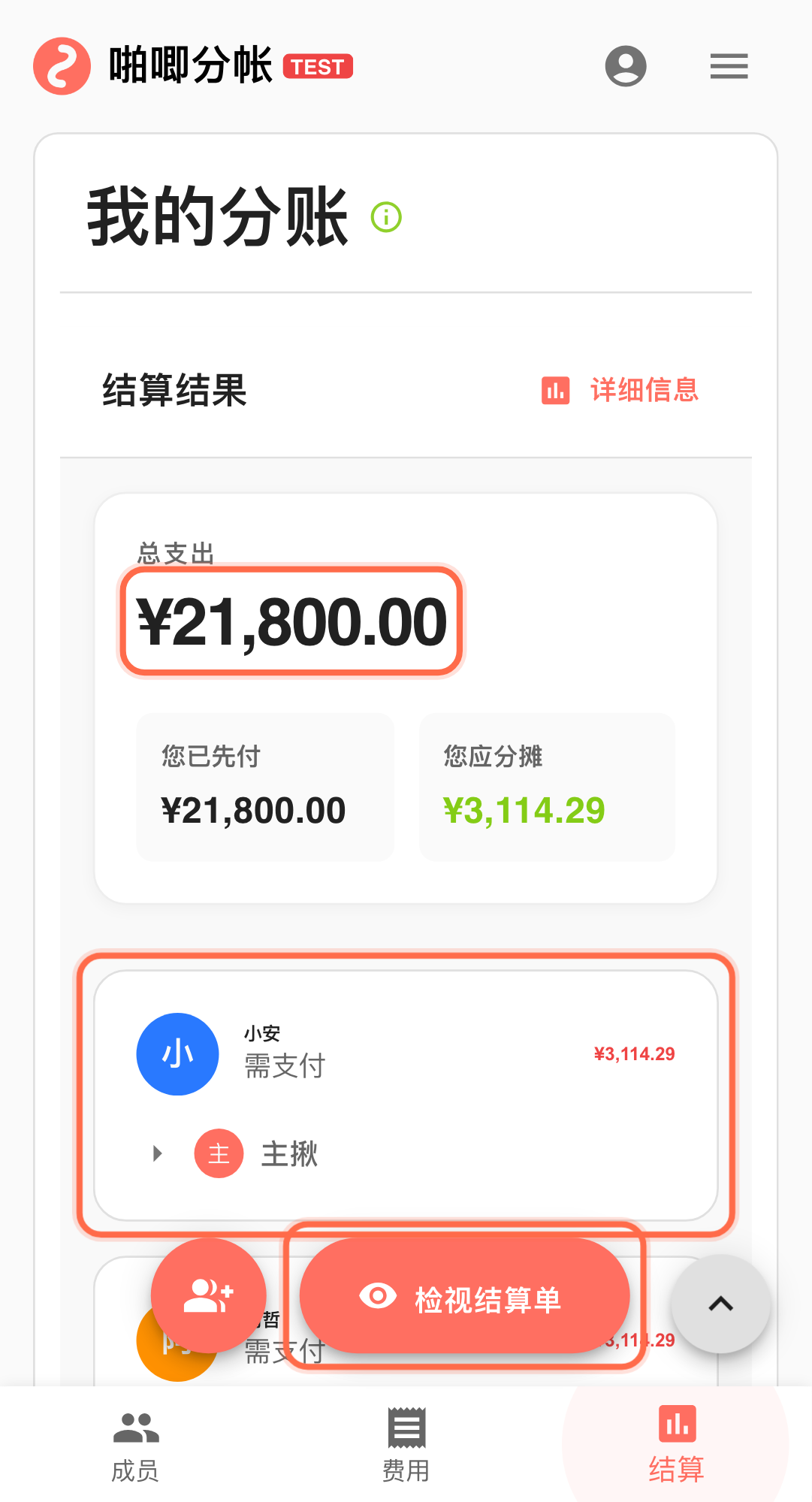 在「结算结果」做最终确认 确认谁该给谁、金额是否完整。