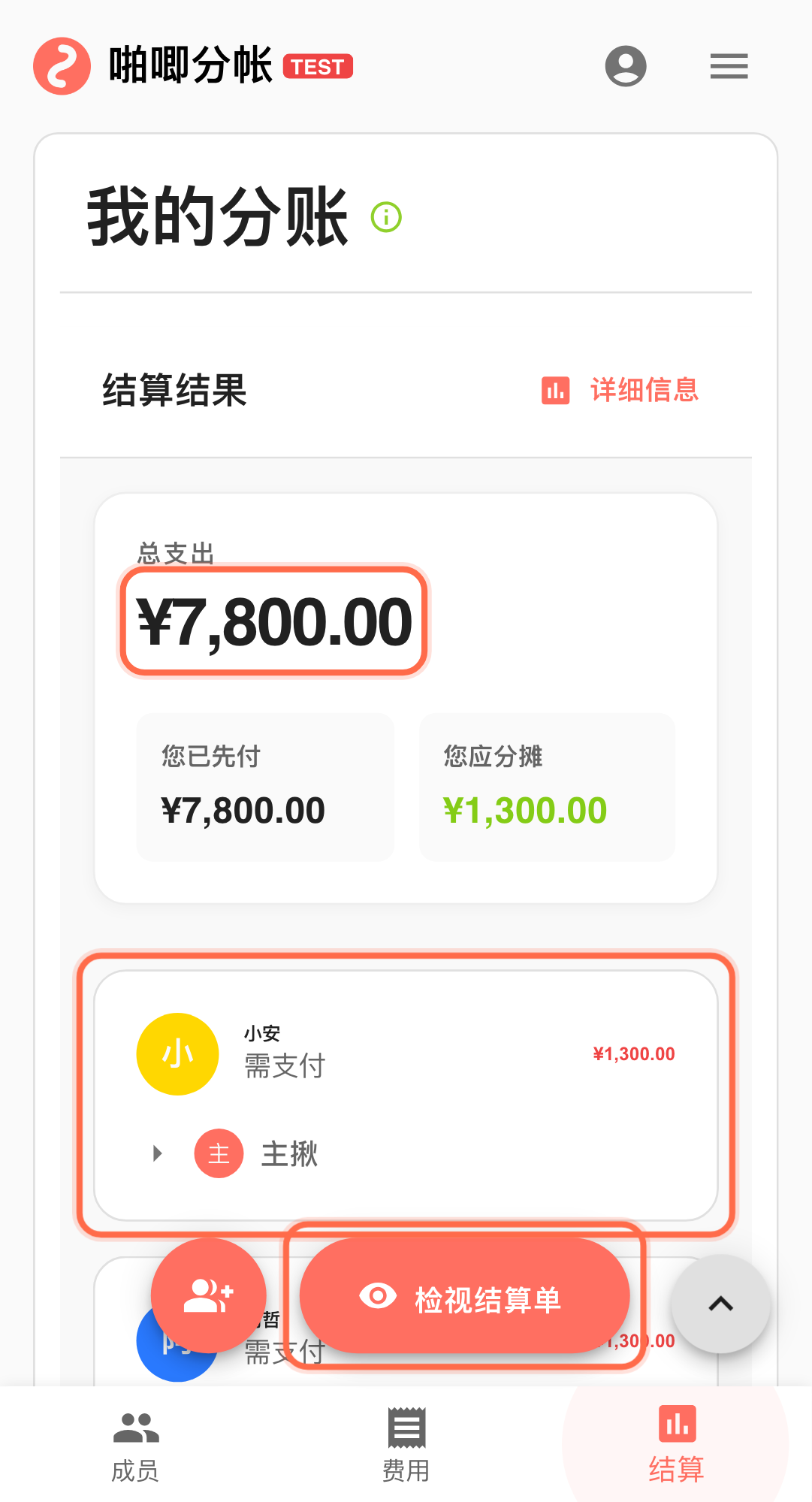 - 行程结束时由建账的人在群里发一次最终版结算链接,请大家在限定时间内确认,不要各自截自己的画面来对。