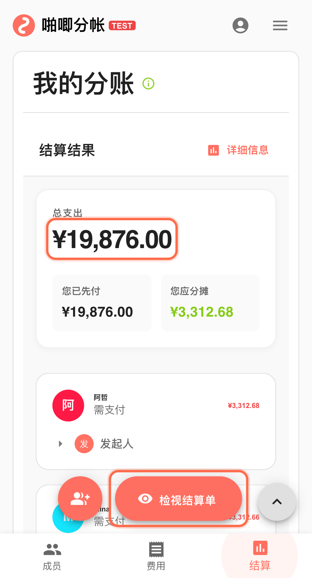 - 你负责小团队分账。