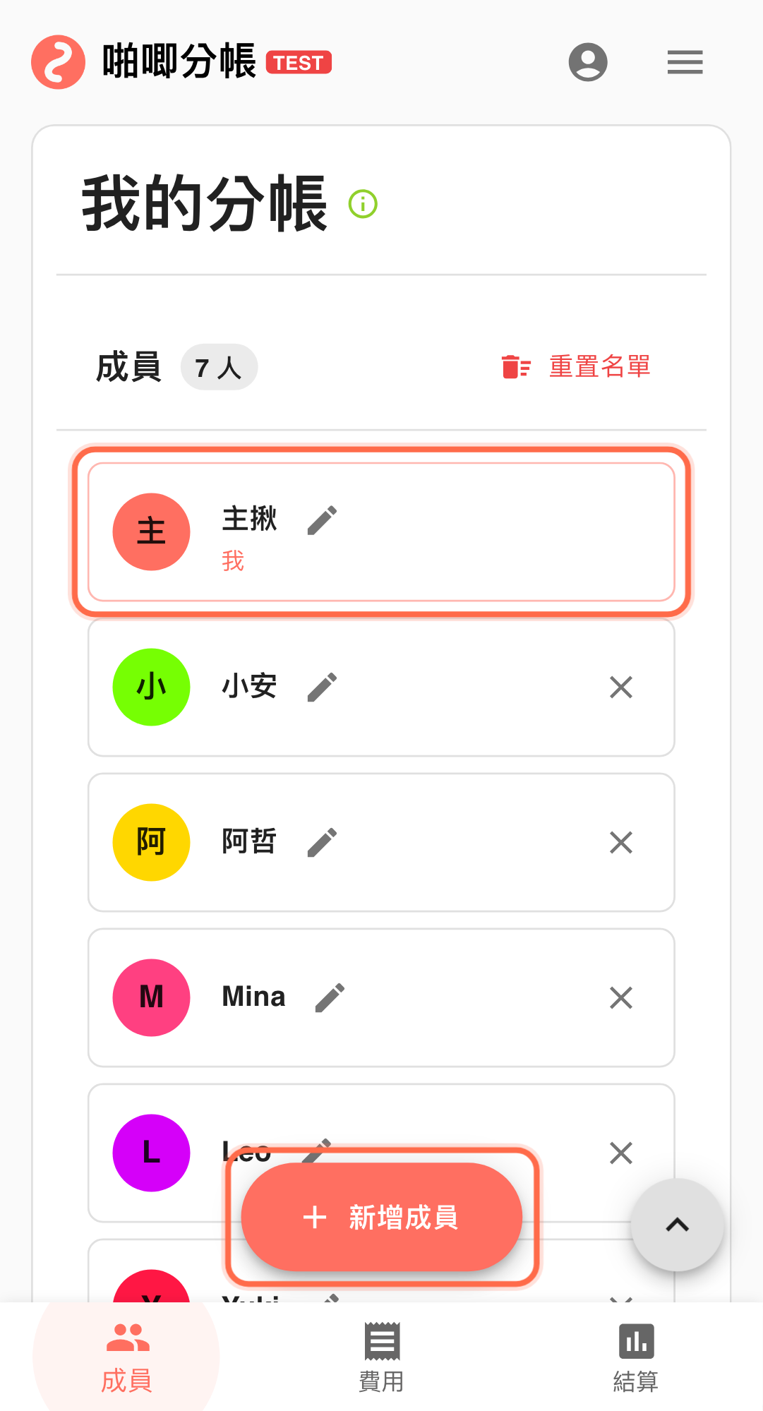 - 逐筆檢查剩餘參與者名單,確認已退出的人沒有殘留在任何費用項目中。