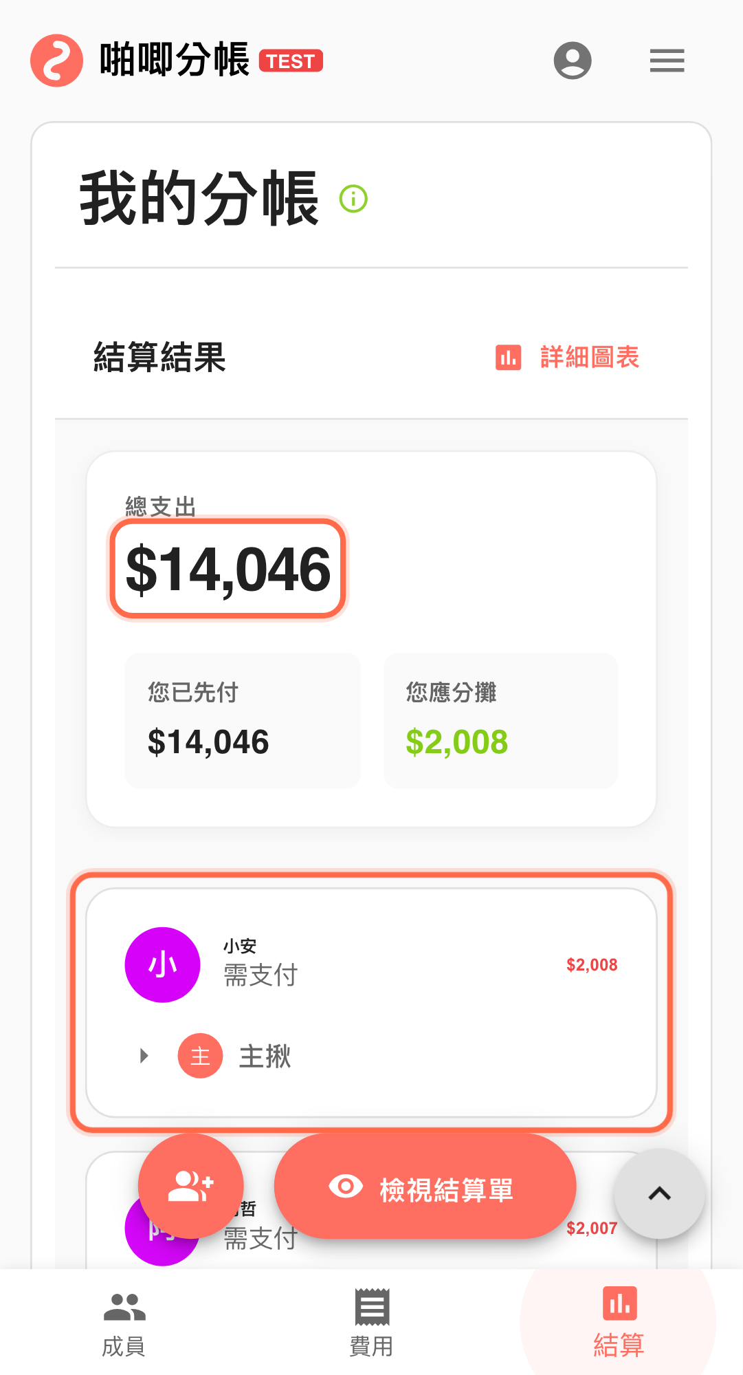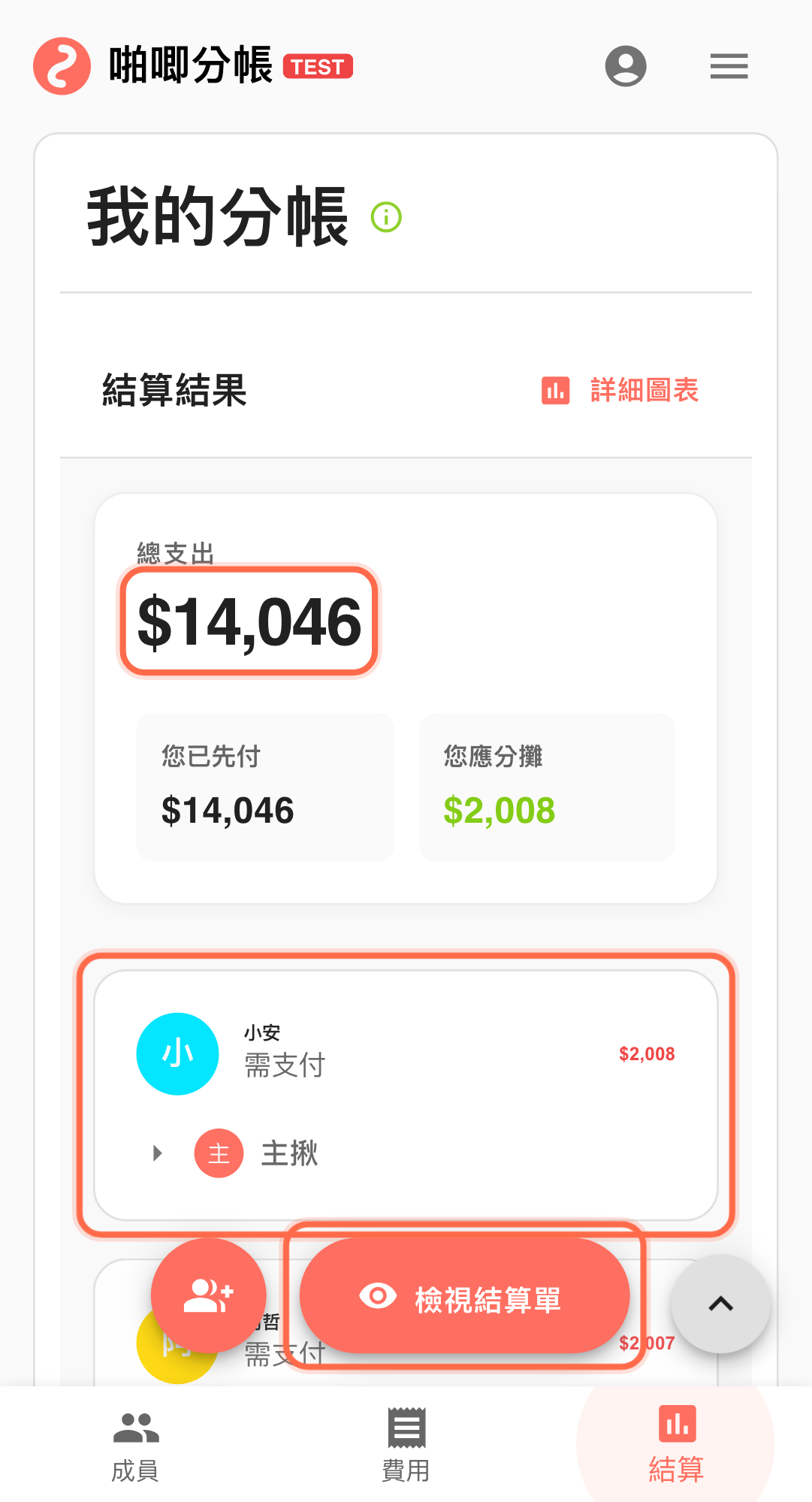 回到「結算結果」確認最終應收應付 確認數字後,再用「檢視結算單」通知轉帳。 若當下仍有爭議,先凍結此版,不急著轉帳,避免收款後又要退款重算。