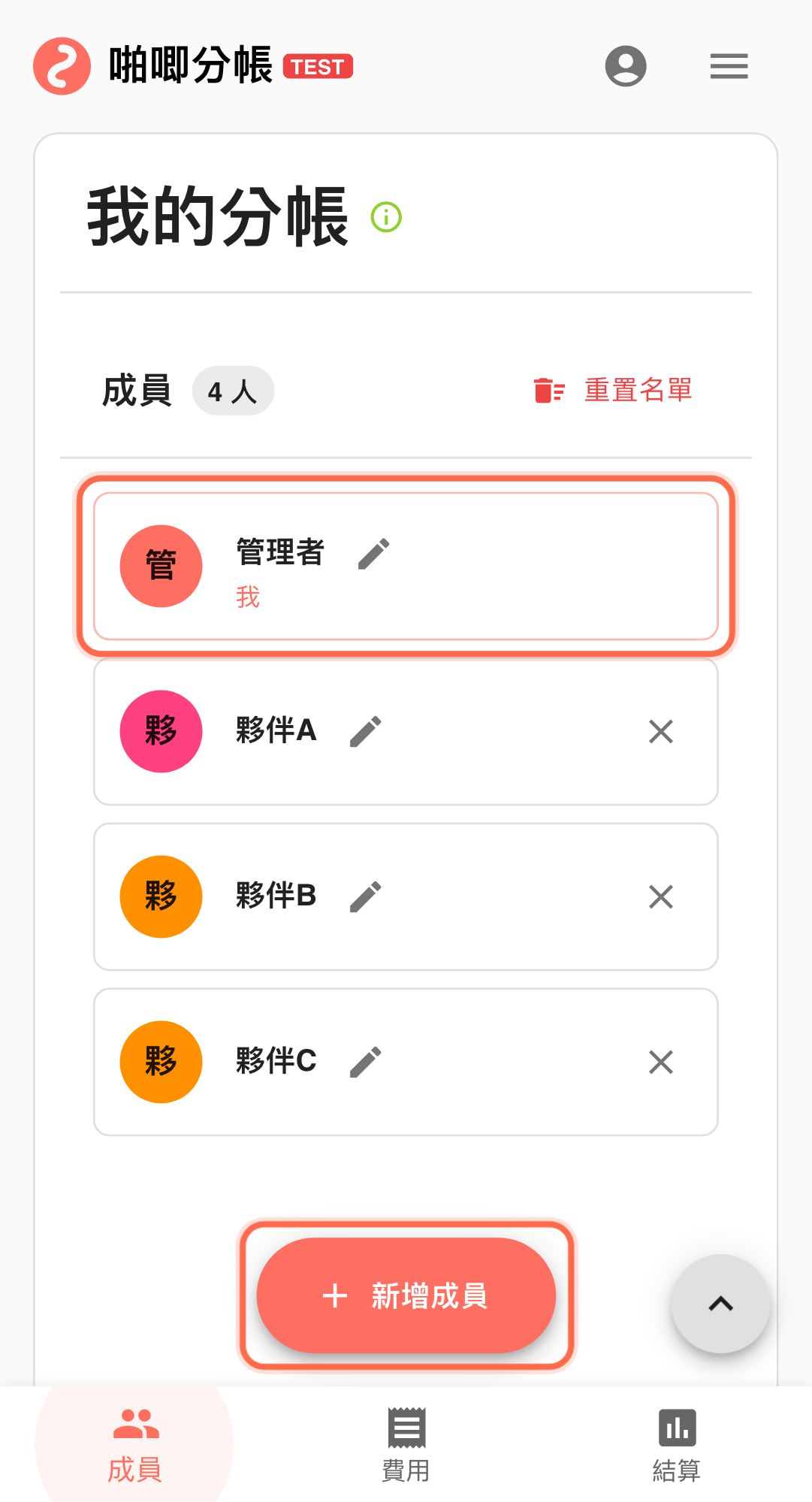 - 你是小團隊的分帳管理者。